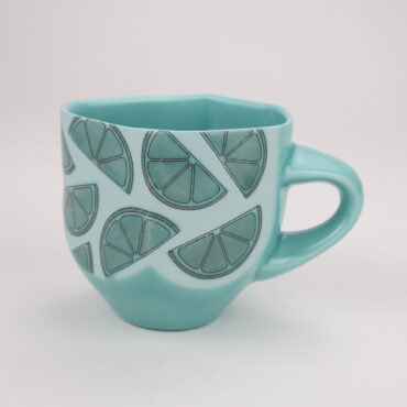 Lemon Lime Mug 2 Slipcast Porcelain, 4x6x4″