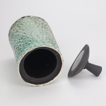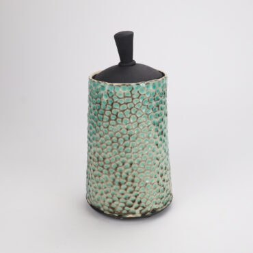 Lidded Jar Turquoise Stoneware, 8.5×4.25×4.25″