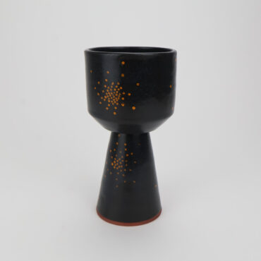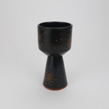 Goblet, 1 earthenware, glaze, underglaze, 6.25x3x3″
