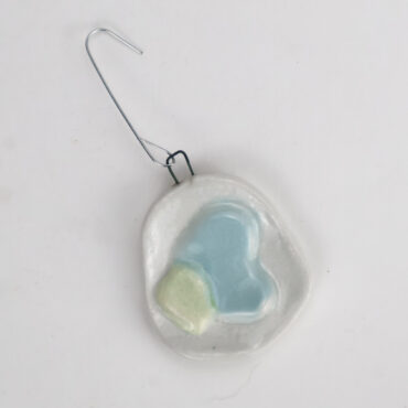 Blue and Yellow OrnamentCone 6 Porcelain , 1.5×1.5x.5″