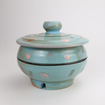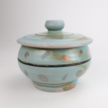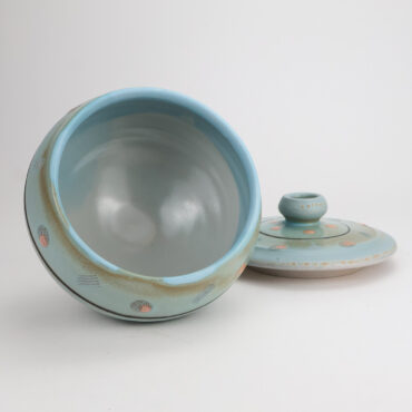Blue JarStoneware, slip, glaze, 6″ x 7″ x 7″ 3.75 lb