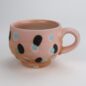 Pink Latte Mug 2Stoneware, slip, glaze 3″ x 5″ x 4″ .75 lb