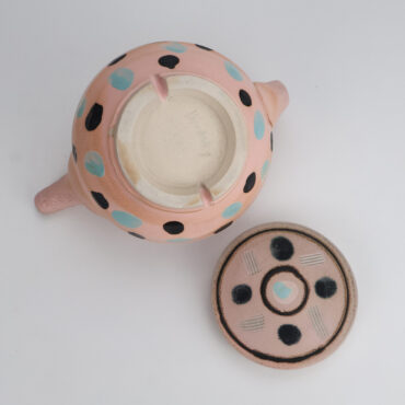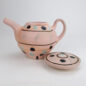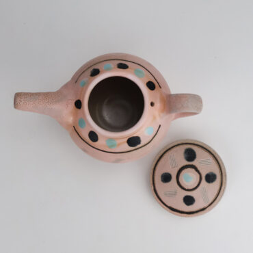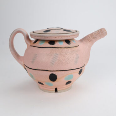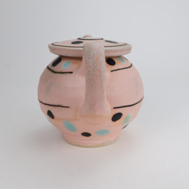 Pink TeapotStoneware, slip, glaze 5.5″ x 8.5″ x 6″ 2.25 lb