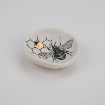 Bee Ring Dish Hand painted porcelain, 1×2.5×2.5″
