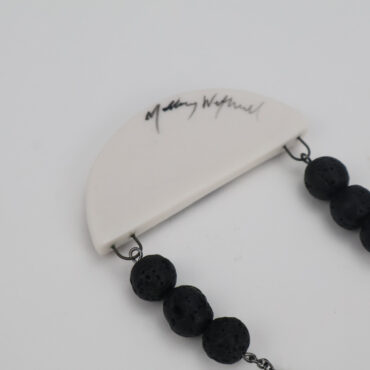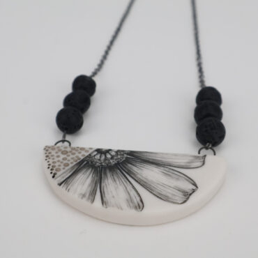 Daisy Necklace 2 Hand painted porcelain, 1.5x1x0.25″