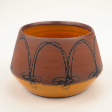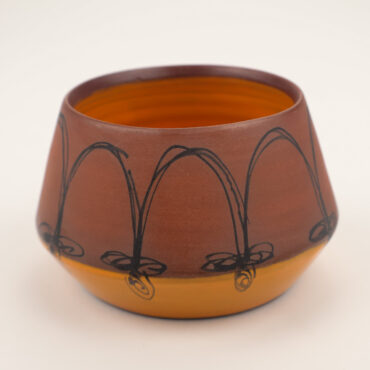 Cup Orange Arch Design 1 Red Stoneware, Underglaze, 3×3.5×3.5″
