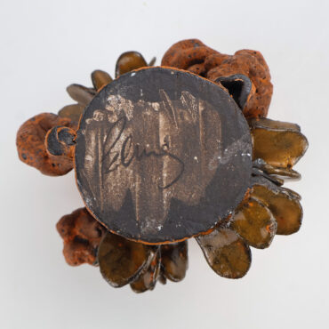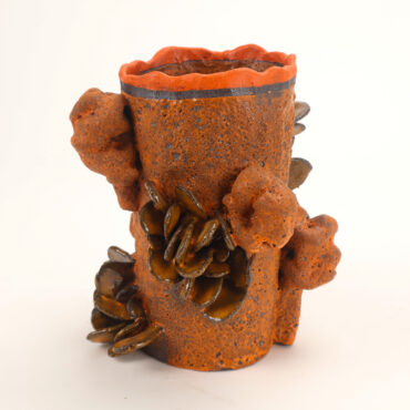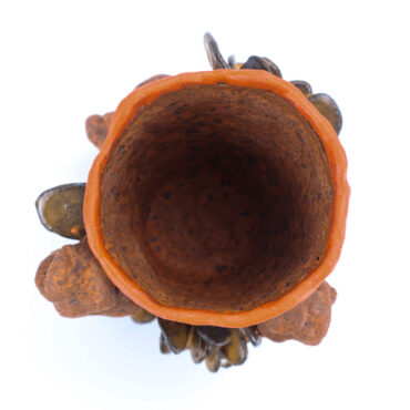 Vessel with Orange PodsDark Stoneware, 6.5x6x6, 2 lb”