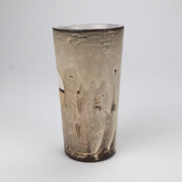 Tall tumbler 7Sodafired Earthenware, Slip and Underglaze, 5.5x3x3″